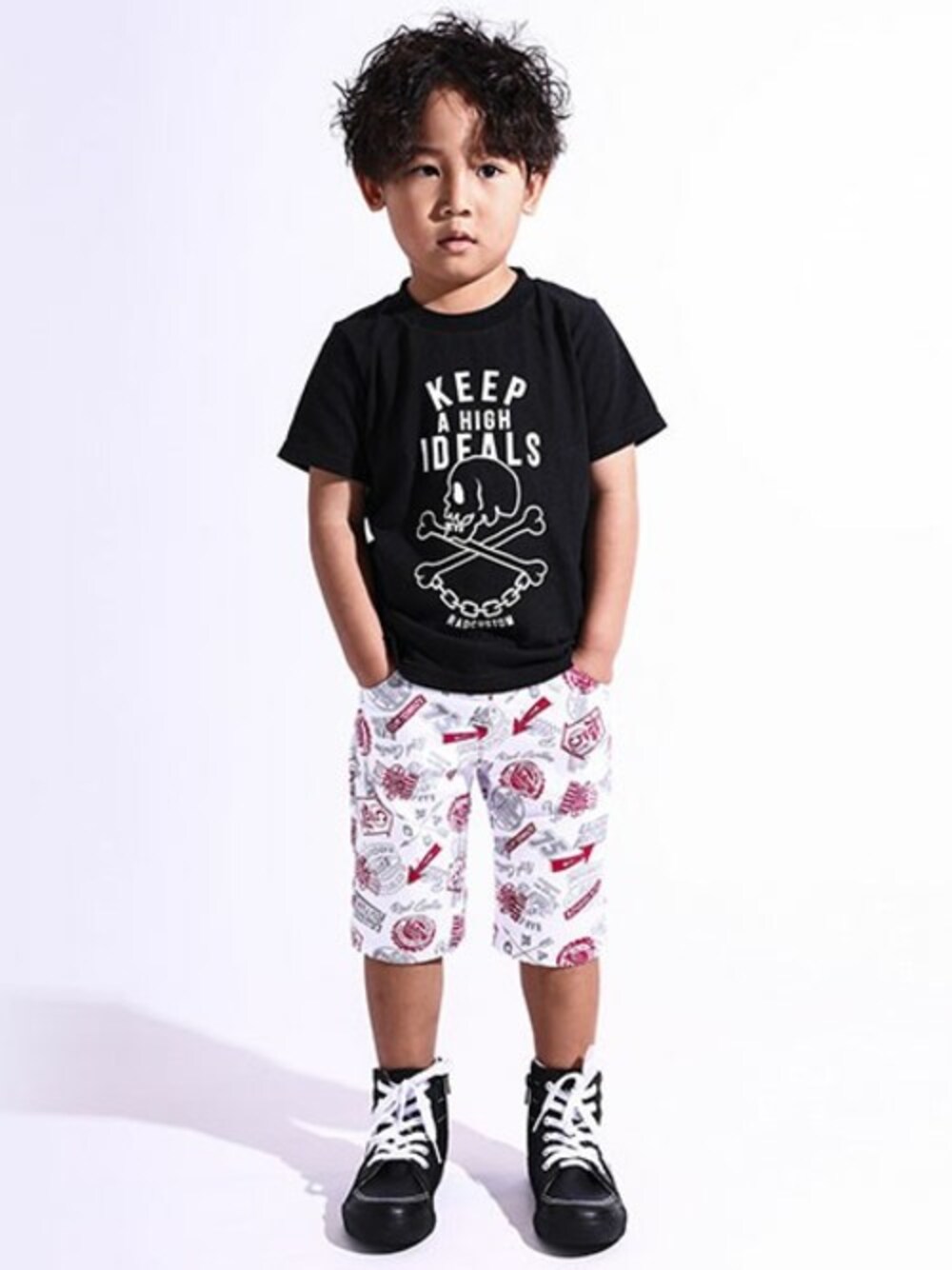 【RAD CUSTOM (ラッドカスタム)】 スカルプリントがポイントのTシャツにアメカジテイストのハーフパンツを合わせてロック印象に★ 着回し力抜群なアイテムばかりなので1枚あるだけでコーディネートが楽しめます!