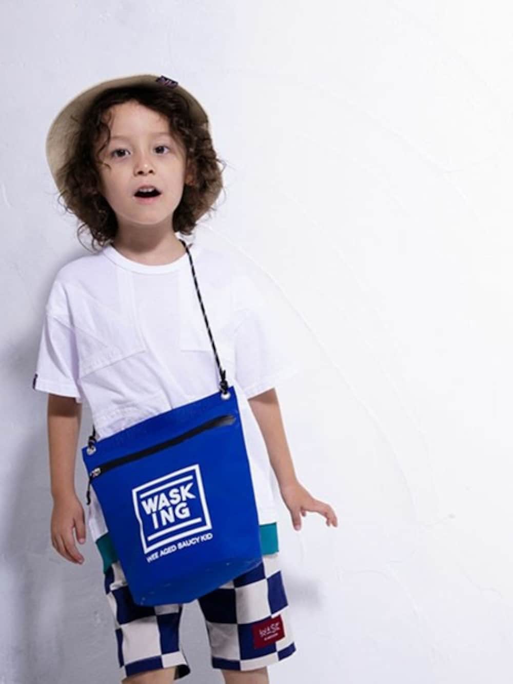 【WASK (ワスク)】 ワスクのシンボルでもあるユニオンジャックをステッチで表現したデザインにこだわりのあるTシャツ。 ゆったりと着用できるビッグシルエットタイプです。 ストレッチ性のある薄手の素材を使用した5分丈パンツ。 大き目のフラッグチェックプリントで切り替えています。