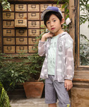 【BeBe (ベベ)】 着るだけで虫よけの効果が得られるインセクトシールド加工を施したパーカー。 通気性に優れたメッシュ素材なので、汗ばむ季節にも最適です。 ダンガリー生地が爽やかなハーフパンツ。 軽い着心地でデイリーユースにピッタリ!