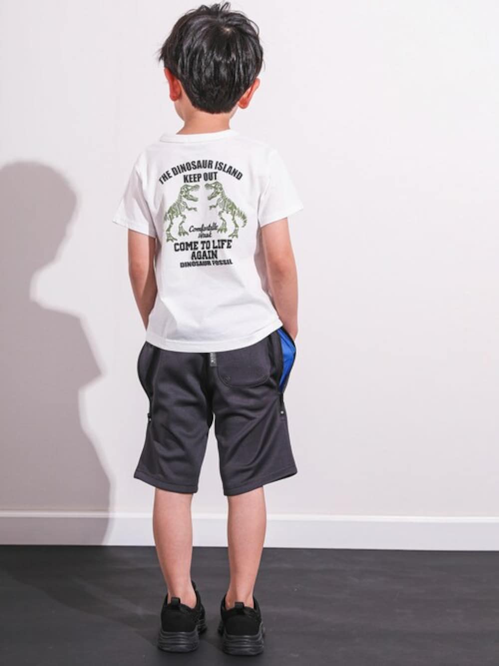 BEBE ONLINE STORE(BEBE ONLINE STORE)のTシャツ/カットソー「【 接触冷感 】 恐竜 化石 ツイン ロゴ プリント 天竺 Tシャツ(100~160cm)」を使ったコーディネート