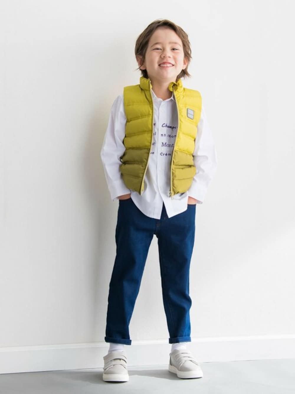 スポーツテイストに都会的でクリーンなイメージをプラスしたミックススタイル。 レイヤードするインナーをシャツにする事でぐっと大人っぽい表情に。 デニムも濃色をチョイスしてすっきりと男前なコーデに仕上げました。 【BeBe(べべ)】 ”LOVE MODERN” 少しおませで、生意気なヨーロピアンカジュアルの提案。 時代性・流行性をとらえ、ベーシックでもワンポイントを施した遊び心、楽しさを盛り込んでいます。 シンプルだけど、こだわりのあるオリジナリティーを重視しています。