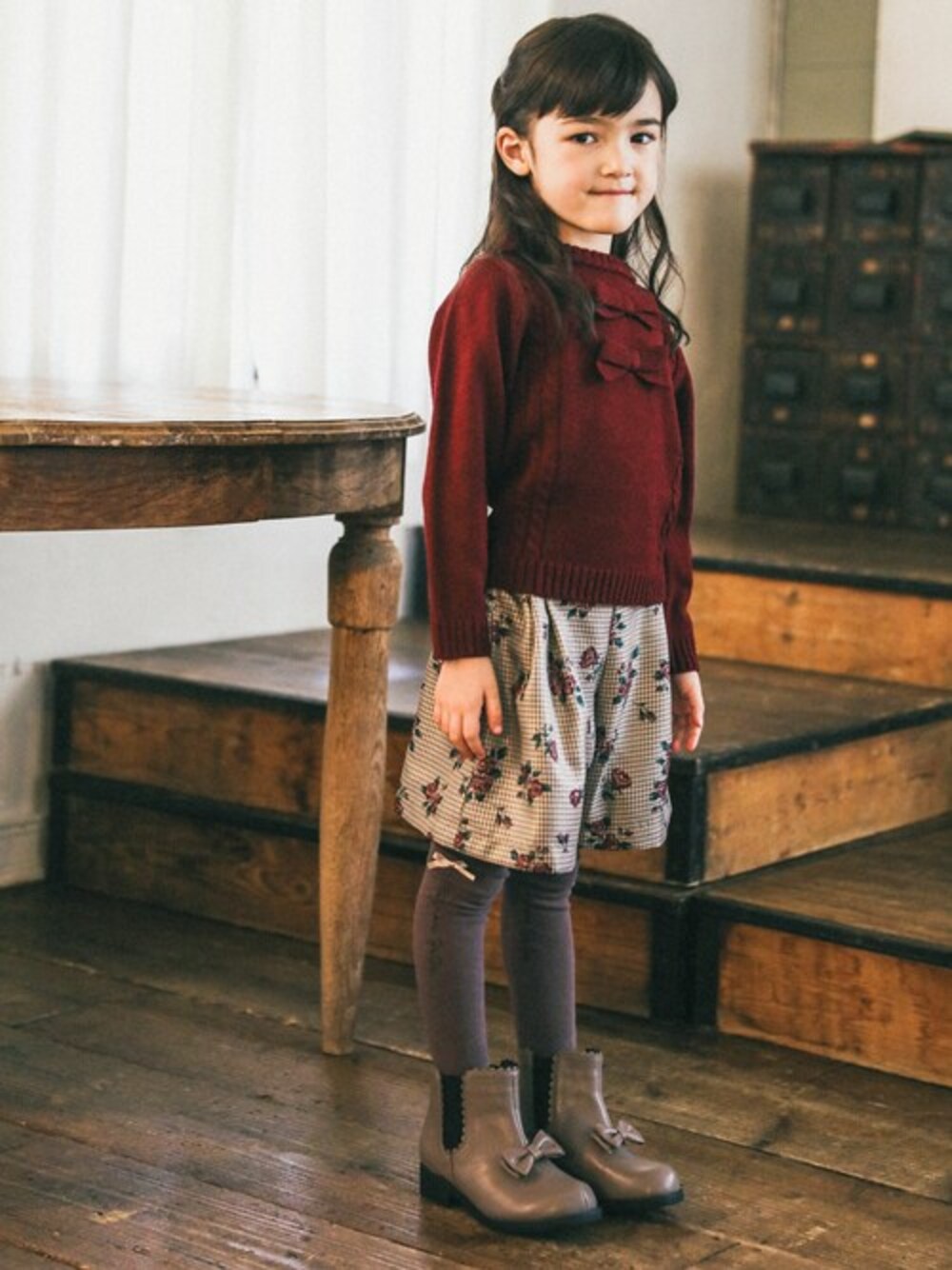 クラシカルなボルドー系のレッドカラーでまとめたレディな秋冬コーデ。 あたたかみのあるニットは同色のリボンでかわいらしさと大人っぽさを備えたおしゃれなトップス。 ボトムをスカート見えするキュロットにする事で動きやすく、お出かけにも映えるスタイルに。 【BeBe(べべ)】 ”LOVE MODERN” 少しおませで、生意気なヨーロピアンカジュアルの提案。 時代性・流行性をとらえ、ベーシックでもワンポイントを施した遊び心、楽しさを盛り込んでいます。 シンプルだけど、こだわりのあるオリジナリティーを重視しています。