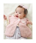 胸下から広がるフレアシルエットが女の子らしい長袖タイプのロンパースにきょとんとしたアニマルフェイスがかわいいベビー靴下とお花レースの生地を使用したベストを合わせてキュートなコーデの完成☆ ベストのニュアンスカラーのレース生地がナチュラルな印象に。 左胸につけたベロアリボンやお袖のフリルがキュートさをプラス♪ 内側はふわふわのボアを使用し、ぬくぬくあったか◎ 起毛したフランネル生地に小さめのチェリープリントがさりげなくかわいいロンパースはベロアリボンをくるりと1周つけて、秋冬らしさをプラスしました。 身生地には2枚の生地を重ねたWフェイスという生地を使用しており、肌触りなめらかで着心地良好です◎ 秋冬のおでかけにおすすめです。 スナップボタンで全開になるので、首が座る前の赤ちゃんに着せやすく、新米ママにもおすすめ! 股下にもスナップが付いていて、足をバタバタしてもはだけにくく、オムツ替えもラクラクな設計になっています。 チュールリボンが女の子らしいヘアバンドは優しいベビーらしい色めで、ふわふわした柔らかい印象に♪ 真ん中につけた、ゴールドチャームが上品さをプラス。 アニマルフェイスがかわいいベビー靴下は花柄のお洋服を着たうさぎモチーフ。 靴下裏底には、星型の滑り止めつきでたくさん動き回るベビーにも安心◎ ソックスやヘアバンドはギフトのプラスワンやプチギフトとしても人気のアイテムです。 【SLAP SLIP(スラップ スリップ)】 ~子どもの欲しいをカタチに~ ヨーロッパのこどものように 子どもらしい今しか着れないナチュラルなかわいさを提案 どこか上品で清楚感漂うフレンチカジュアルは いつものコーディネートをさりげなく格上げ