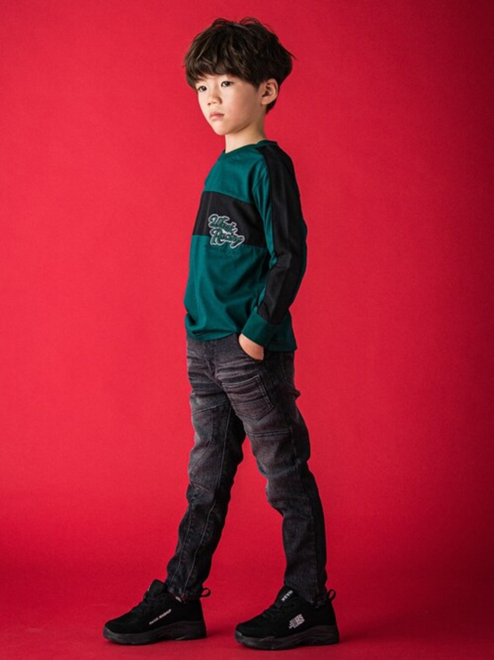 スタイルの良さがぐっと際立つスリムラインのコーディネート。 Tシャツには配色のラインで黒を入れることでシャープに。 スキニーラインのデニムパンツが縦ラインを強調してくれます。 大人びたかっこよさの中にもレーシング風のロゴプリントを入れてワンポイントに。 【 WASK(ワスク)】 WEEAGEDSAUCYKID「我々は小生意気な子供である・・・」 自由で遊び心満載な男の子たちへ アメリカンテイストをベースにその時々のトレンドや異なる要素をプラス エッジの効いたカジュアルスタイルをキッズウェアで表現