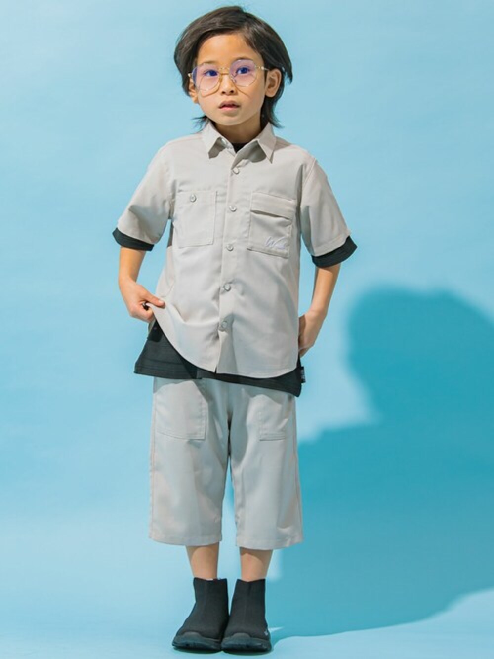 きれいなとろみのあるスマートな生地感のセットアップコーデ。 シンプルなのに目を引く大人っぽさのあるかっこいいコーディネート。 見た目だけじゃなく、接触冷感素材でお出かけ中も快適なんです。 ベージュの柔らかいセットアップにインナーの濃色のTシャツをチラ見せ。 コーディネートが締まりますね♪ 【 WASK(ワスク)】 WEEAGEDSAUCYKID「我々は小生意気な子供である・・・」 自由で遊び心満載な男の子たちへ アメリカンテイストをベースにその時々のトレンドや異なる要素をプラス エッジの効いたカジュアルスタイルをキッズウェアで表現