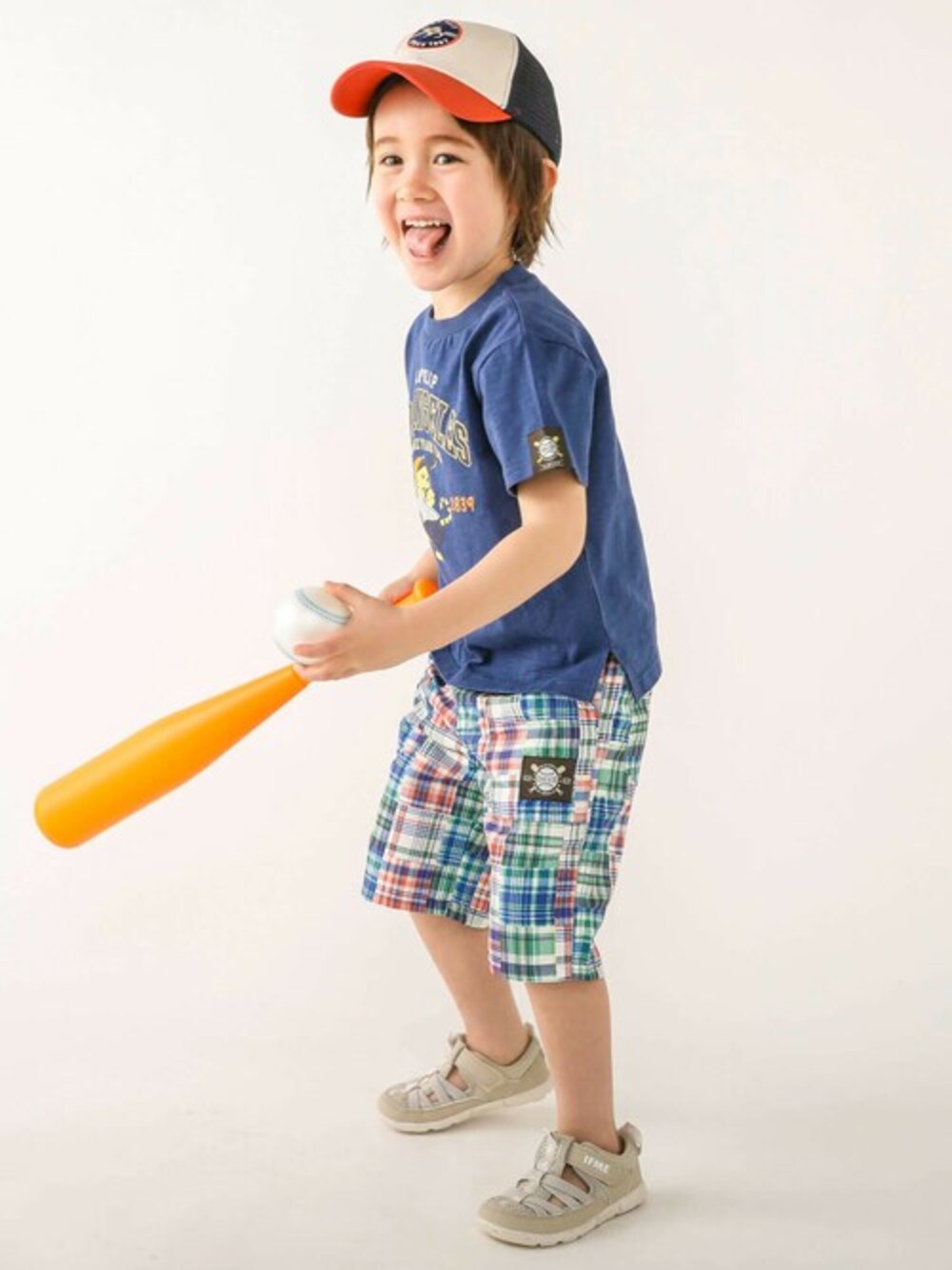 スラブ生地を使用した半袖Tシャツにチェックのパッチワーク柄プリントをほどこした5分丈パンツをあわせた夏らしいデイリーコーデ。 カラーごとに異なる前面にほどこしたTシャツのプリントはオレンジ(バスケ)、ネイビー(野球)、ブルー(水泳)を楽しむ恐竜、海や陸のいきものたち。 スポーツを楽しんでいる姿がキュートなアイテムになっています。 Tシャツにはスポーツが始まった年号が記載されているよ! みんなはわかったかな?? 通園・通学・お外遊びなど春夏のデイリー使いに大活躍するのでワードロープに入れておきたい1着。 接触冷感の機能性素材を使用しているので、暑い夏も快適に過ごせるのもうれしいポイント◎ パンツにさりげなくオンしたネームタグがオシャレ。 透湿+防汚加工を施した生地を使用しているので水溶性の汚れがつきにくく、蒸れがちなパンツの中の湿気を逃がし、快適でさわやかにはけるのがうれしいアイテム。 ウエストがゴムになっているのでお着替えラクラクでキッズもママもニッコニコ。 春夏のデイリーコーデに大活躍間違いなしなのでワードロープに入れておきたい1着。 キャップも合わせて日よけ対策もバッチリコーデの完成◎ 【SLAP SLIP(スラップ スリップ)】 ~子どもの欲しいをカタチに~ ヨーロッパのこどものように 子どもらしい今しか着れないナチュラルなかわいさを提案 どこか上品で清楚感漂うフレンチカジュアルは いつものコーディネートをさりげなく格上げ