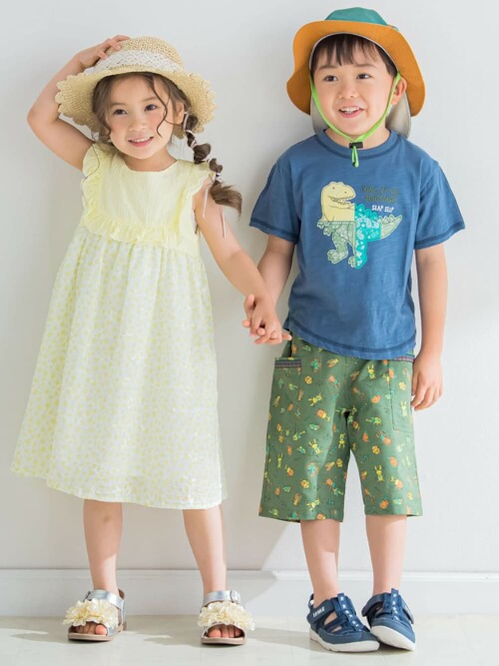 女の子はさわやかなイエローがパッと目を引くワンピースにハットを合わせました。 男の子は前面プリントが印象的な半袖Tシャツにチロリアンテープのカラーと合わせたパッと目を引くハーフパンツをスタイリング。 夏の日差し対策に久付きのサファリハットを合わせました。 男の子にも女の子にも夏を満喫してほしいコーディネートです。 【SLAP SLIP(スラップ スリップ)】 ~子どもの欲しいをカタチに~ ヨーロッパのこどものように 子どもらしい今しか着れないナチュラルなかわいさを提案 どこか上品で清楚感漂うフレンチカジュアルは いつものコーディネートをさりげなく格上げ