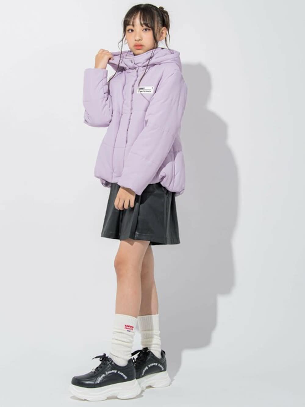 幅広いコーデにフィットするフードが取り外しできる、あったか中綿スワローブルゾンです。 前後で丈感の異なるスワローブルゾンはトレンドのカーゴパンツやワイドと相性抜群! デニムにも合い、ワンピースの上から羽織ってもバランス良く着ていただけます。 フードはふっくらとしたダブルフェイス仕立て。 柔らかく軽いのに、フード裏が供布の2枚仕立てになっていることで見た目以上に暖かく、とても機能的です。 気分やスタイルに合わせてフードを取り外せば、スッキリスタンド襟のブルゾンに早変わり。 首元まであったかなネックデザインは◎ シンプルなスタンドタイプでもご着用いただける2WAY仕様です。 袖口・裾もゴムで絞ってあるので、しっかりと風をシャットアウトしてくれて◎ カラーは軽やかで明るいアイボリー(オフホワイト)、暗くなりがちな冬のコーデをパッと明るくしてくれるラベンダー(パープル)、コーディネートを引き締めるブラックの3色です。 どんなスタイリングにも合わせやすい丈で、毎日でも着たくなるスワローブルゾン。 通学だけでなくタウンユースでも活躍する冬の定番、おススメのアウターです。 【9月のテーマ/Heroine mood】 新学期も始まり9月はガールズパワー全開! はやりカラーのパワフルレッドを取り入れ、Y2K要素のディティールで誰よりパワフルなヒロインに! 【シーズンテーマ/Cheerful】 今はやりの「活気あふれるワーキングガール」に、スポーティ要素と異素材使いのディティールで遊び心を取り入れ、パワフルレッドやリッチイエローといった深みのある色で明るく元気な女の子を表現! 【ZIDDY(ジディー)】 FOR FASHIONABLE GIRLS ~オシャレが好きな女の子を応援~ レディース・ティーンズトレンドを取り入れた、女の子の“今”に寄り添うファッションブランド ティーンズ心ときめく要素を詰め込んだ商品を展開し、女の子のオシャレを応援