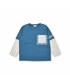 大きなポケットが目を惹く、男の子用長袖フェイクレイヤード・ビッグシルエットTシャツです。 ポケット周りと袖に入ったロゴもアクセント。 サイドの2本ラインと大きなワッペンがデザインアクセントとなったチェック柄がおしゃれな男の子用ロングパンツとコーディネート。 身生地は丈夫な生地感と柔らかい肌触りを兼ね備えた綿100%素材。 オーバーサイズのラフな着心地で、おしゃれなバイカラー配色が楽しめます。 お色は濃い緑青色のぺトロールブルー×杢オートミール(ブルー)と、杢グレー×スモーキーブルー(グレー)の2色です。 独特の雰囲気を持ったニュアンスカラーは、シャツやジャケットのインナーに合わせても抜群の存在感を発揮してくれます。 まるでTシャツを重ね着しているようなフェイクレイヤードTシャツは、程よい厚さの生地感でロングシーズン着用できる軽い着心地。 ゆとりのある身幅でシンプルなデザインなため、どんなボトムとも合わせやすいのがポイントです。 カラーパンツやデニムパンツに合わせると、肩落ちのデザインの絶妙なゆるさのシルエットでトレンドのコーデが完成! サイドライン入りジャガードパンツ(1769-57005)とのコーディネートがおススメです。 With you、the days shine even brighter あなたがいると、日々はさらに輝く 【Noeil aime BeBe(ノイユ エーム べべ)】 「Daily+」 デイリープラス Life・Relax・Basicをベースにトレンドをプラスしたリラックスカジュアルブランド。 自分たちの趣味や流行を大事にしながらも、 子供との時間を大切にしたいパパ・ママに向け子供服を提案します。