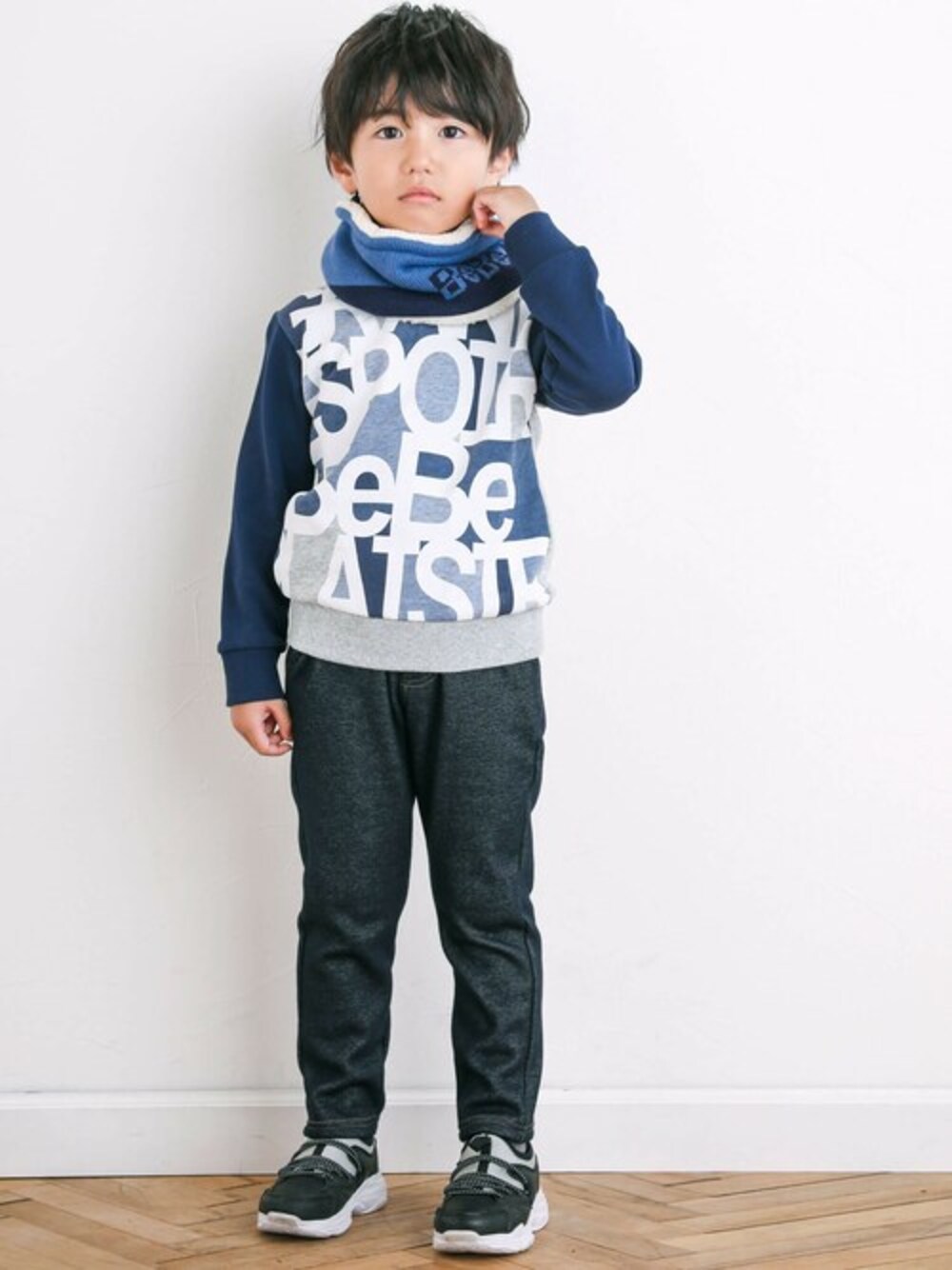 インパクトのある前身頃のロゴデザインが目を引くトレーナー。 背中と袖も配色になっていて他にはない冬コーデの主役になるかっこいい1着です。 首元のリブは幅を広めにもたせてややハイネックになっているので冬でも暖か。 ボトムも裏起毛のぬくぬくなデニムパンツを合わせて冬の寒さに負けないコーディネートに。 【BeBe(べべ)】 ”LOVE MODERN” 少しおませで、生意気なヨーロピアンカジュアルの提案。 時代性・流行性をとらえ、ベーシックでもワンポイントを施した遊び心、楽しさを盛り込んでいます。 シンプルだけど、こだわりのあるオリジナリティーを重視しています。