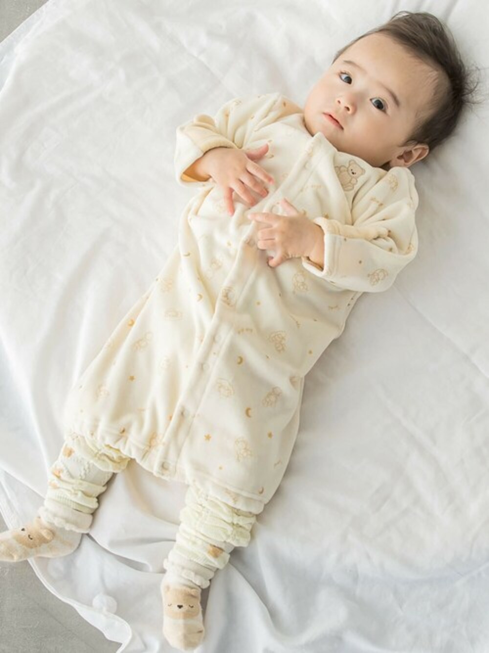 触り心地のいいスムース生地を使用した2WAYオール。 身生地はいろんなアニマルがくつろいでいるプリント柄。 お気に入りの動物さんは見つかったかな?? 胸元のモチーフパッチ刺しゅうや袖口でスヤスヤ眠るアニマルフェイスは「オフホワイト:クマ」、「ピンク:ウサギ」でカラーごとに異なるのがポイント! お子様の成長に合わせてスナップボタンでドレス型、パンツ型の2通りで着用可能◎ ワンサイズ展開で生まれたてから6か月ころまで長くご着用いただけるので、サイズ選びが難しいベビーギフトにもおすすめです。 赤ちゃんの快適な睡眠をサポートしてくれる優秀アイテムです。 同じ柄を使用したスタイ(1834-57031)やスリーパー(1834-57020)と合わせたベビーが大好きアニマルいっぱいギフトがオススメ。 コーディネートになじむオフホワイト、女の子らしいピンクの2色展開です。 ※柄の出方は生地の裁断により一点一点異なります。 2023年秋冬男の子・女の子アイテム。 【SLAP SLIP(スラップ スリップ)】 ~子どもの欲しいをカタチに~ ヨーロッパのこどものように 子どもらしい今しか着れないナチュラルなかわいさを提案 どこか上品で清楚感漂うフレンチカジュアルは いつものコーディネートをさりげなく格上げ