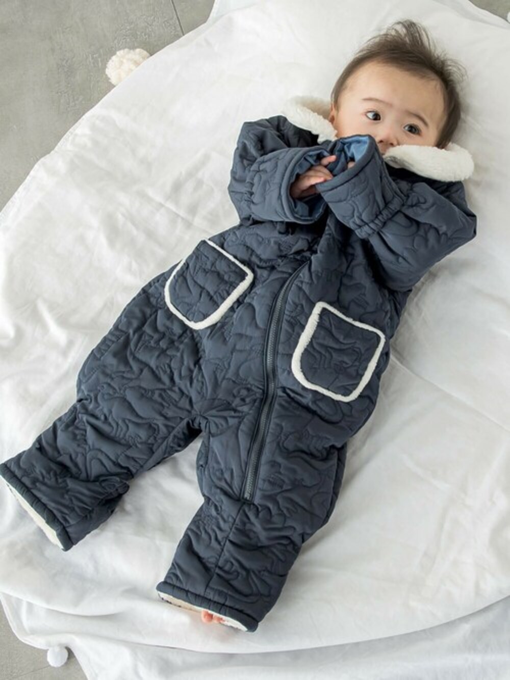 BEBE ONLINE STORE(BEBE ONLINE STORE)のその他ベビーウェア「【お揃い】裏ボア中わたキルト総柄バギーオール(70-80cm)」を使ったコーディネート