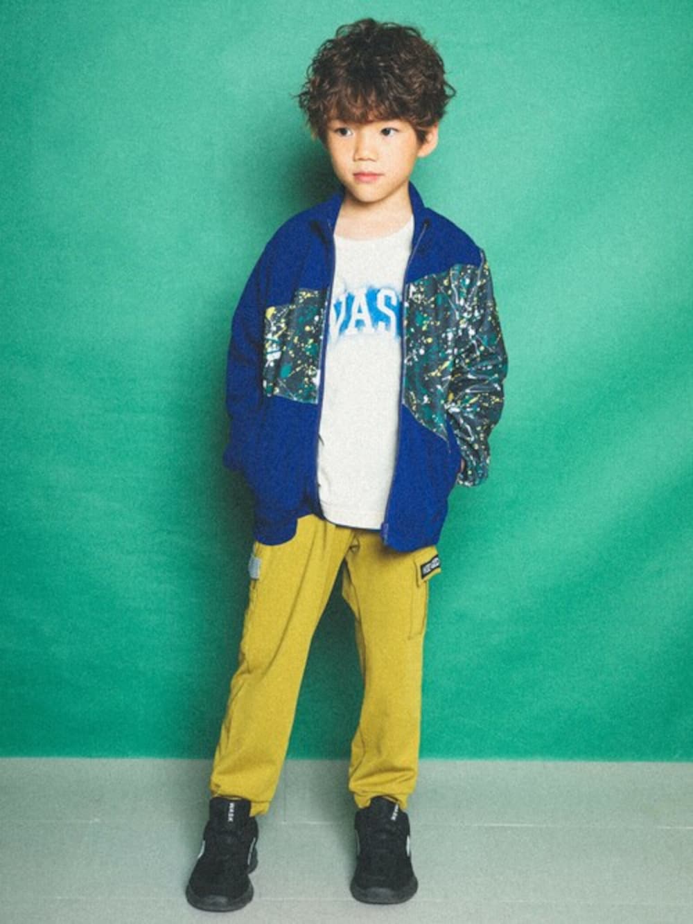 個性たっぷりのペンキを飛ばしたようなプリントが印象的な切替ジャケットに、 反対色のマスタードイエローのパンツを合わせた目を引くコーディネート。 インナーには白Tを合わせて爽やかさをプラス。 ストレッチの効いたジャージのアウターは通学にも使いやすさバツグン。 アクティブな男の子にぴったりなコーディネートです。 【 WASK(ワスク)】 WEEAGEDSAUCYKID「我々は小生意気な子供である・・・」 自由で遊び心満載な男の子たちへ アメリカンテイストをベースにその時々のトレンドや異なる要素をプラス エッジの効いたカジュアルスタイルをキッズウェアで表現