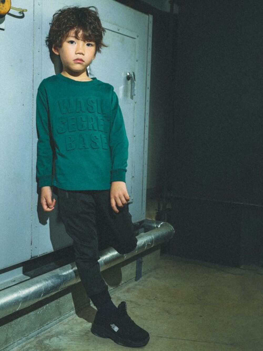 一見無地Tシャツに見えて、エンボス加工のロゴの入ったTシャツ。 胸元を覆う大胆な大きさのロゴだけど凸凹で表現しているのですっきりと見えます。 腰の後ろにはさりげなーくWASKのおサルさんがON。 ボトムは異素材切替の入ったダンボールニットのジョガーパンツでアクティブに。 通学や遊びなどのデイリーユースにもぴったりなコーディネートです。 【 WASK(ワスク)】 WEEAGEDSAUCYKID「我々は小生意気な子供である・・・」 自由で遊び心満載な男の子たちへ アメリカンテイストをベースにその時々のトレンドや異なる要素をプラス エッジの効いたカジュアルスタイルをキッズウェアで表現