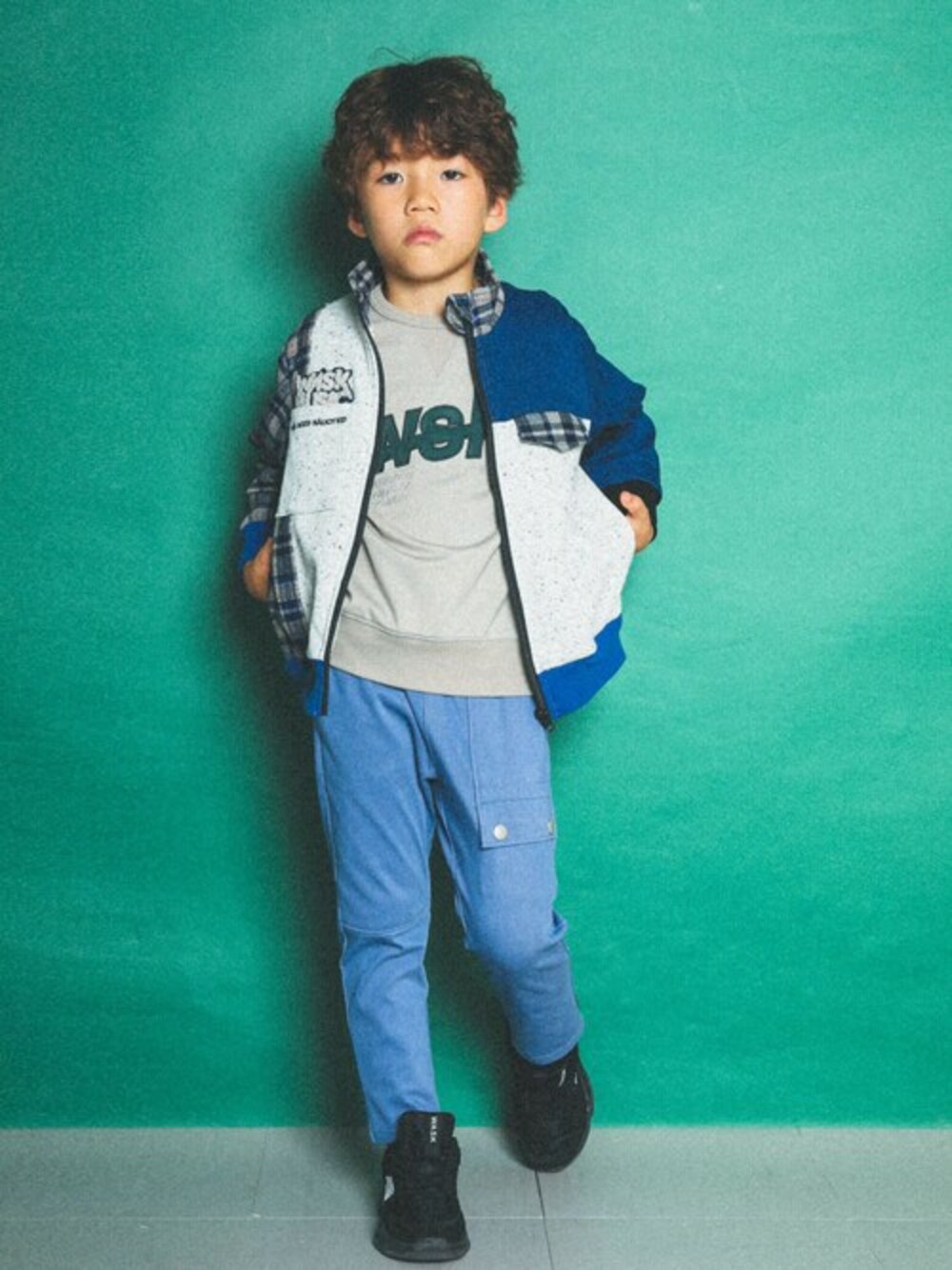 表面感の綺麗なポンチ素材に敢えてカジュアルな質感のカルゼ素材をパッチワークし、 程良い上品さとカジュアルさを両立したWASKならではのトレーナー。 大人っぽさのあるくすみカラーでまとめられています。 デイリーにも着やすいスウェットのブルゾンとストレッチパンツを合わせてコーディネート。 【 WASK(ワスク)】 WEEAGEDSAUCYKID「我々は小生意気な子供である・・・」 自由で遊び心満載な男の子たちへ アメリカンテイストをベースにその時々のトレンドや異なる要素をプラス エッジの効いたカジュアルスタイルをキッズウェアで表現