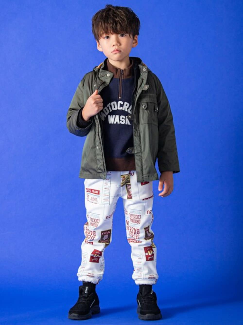 バイカースタイルのジャケット + ボアの切替ジャケット 1枚づつ別々でもボアジャケットをライナーとして重ねても着られる3WAYデザイン。 コーディネートに合わせて様々な着回しが可能なアウターです。 ボトムにはアメリカンダイナーのメニュー風のプリントが前面に入った裏起毛パンツ。 レトロな雰囲気を加えたアメカジスタイルを楽しめる組み合わせです。 【 WASK(ワスク)】 WEEAGEDSAUCYKID「我々は小生意気な子供である・・・」 自由で遊び心満載な男の子たちへ アメリカンテイストをベースにその時々のトレンドや異なる要素をプラス エッジの効いたカジュアルスタイルをキッズウェアで表現