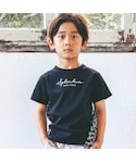 BEBE ONLINE STORE(BEBE ONLINE STORE)のTシャツ/カットソー「手書き風ロゴ総柄切り替えポンチTシャツ(80~150cm)」を使ったコーディネート