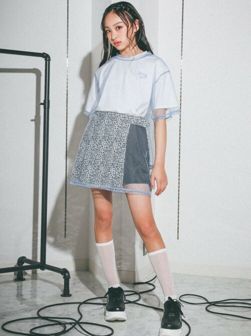 3WAYで着れるチュールトップス&Tシャツセットアイテムラップデザインでアシンメトリーに仕上げたカットジャガード生地のスカパンとコーディネート。 Tシャツをインしたらほどよい透け感のチュール見せが叶う、大人のムード漂う1着です。 シャレな韓国っぽスタイルにおススメ! 【ZIDDY(ジディー)】 FOR FASHIONABLE GIRLS ~オシャレが好きな女の子を応援~ レディース・ティーンズトレンドを取り入れた、女の子の“今”に寄り添うファッションブランド ティーンズ心ときめく要素を詰め込んだ商品を展開