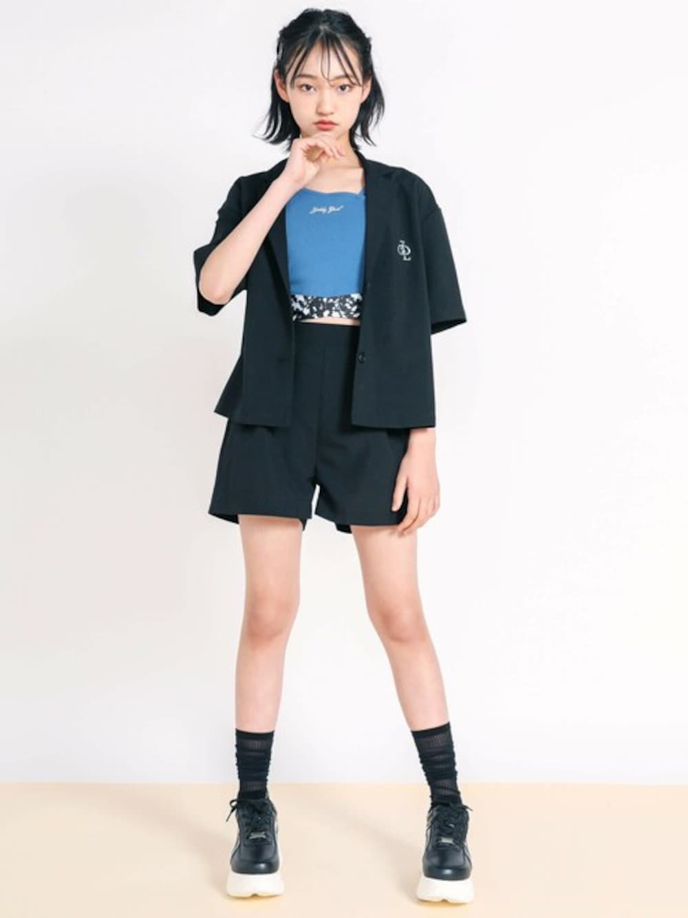季節感のあるスタイリングをいち早く取り入れるならコレ! きちんと感はそのままに、ゆるシルエットのジャケットやショートパンツでデイリースタイルに活躍できるコーデです。 インには裾のゴムテープがクロスデザインになっているトレンド感抜群なブラトップをセット。 大人っぽい雰囲気です。 【ZIDDY(ジディー)】 FOR FASHIONABLE GIRLS ~オシャレが好きな女の子を応援~ レディース・ティーンズトレンドを取り入れた、女の子の“今”に寄り添うファッションブランド ティーンズ心ときめく要素を詰め込んだ商品を展開