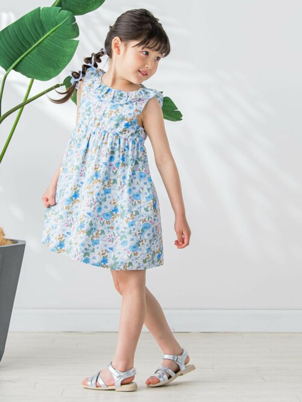 花柄がパッと目を引くワンピース。 切り替え部分にキュッと寄せたギャザーや後ろから襟元にグルっと入ったフリルがキュートなデザインです。 キレイな形になるように、後ろはボタンタイプにしました。 裾に向かって広がるAラインのデザインがガーリーなアイテムです。 後ろの切り替え部分にオンしたリボンはボタンで取り外しができるから気分に合わせて付け替えできるのがうれしい。 同じ生地を使用したティアードデザインのチュニック(1815-63532)の展開もあるので姉妹・お友達とのさり気ないリンクコーデもかなう1着です。 麦わら帽子やサンダルと合わせて夏にピッタリなコーディネートの完成☆ 花柄が映えるオフホワイト系とさわやかなブルー系の2色展開です。 ※裏地あり ※右脇ポケットあり ※柄の出方は生地の裁断により一点一点異なります。 ※バスト寸法は、多少の誤差が生じる事がございます。あらかじめご了承下さい。 2024年春夏女の子アイテム。 【SLAP SLIP(スラップ スリップ)】 ~子どもの欲しいをカタチに~ ヨーロッパのこどものように 子どもらしい今しか着れないナチュラルなかわいさを提案 どこか上品で清楚感漂うフレンチカジュアルは いつものコーディネートをさりげなく格上げ
