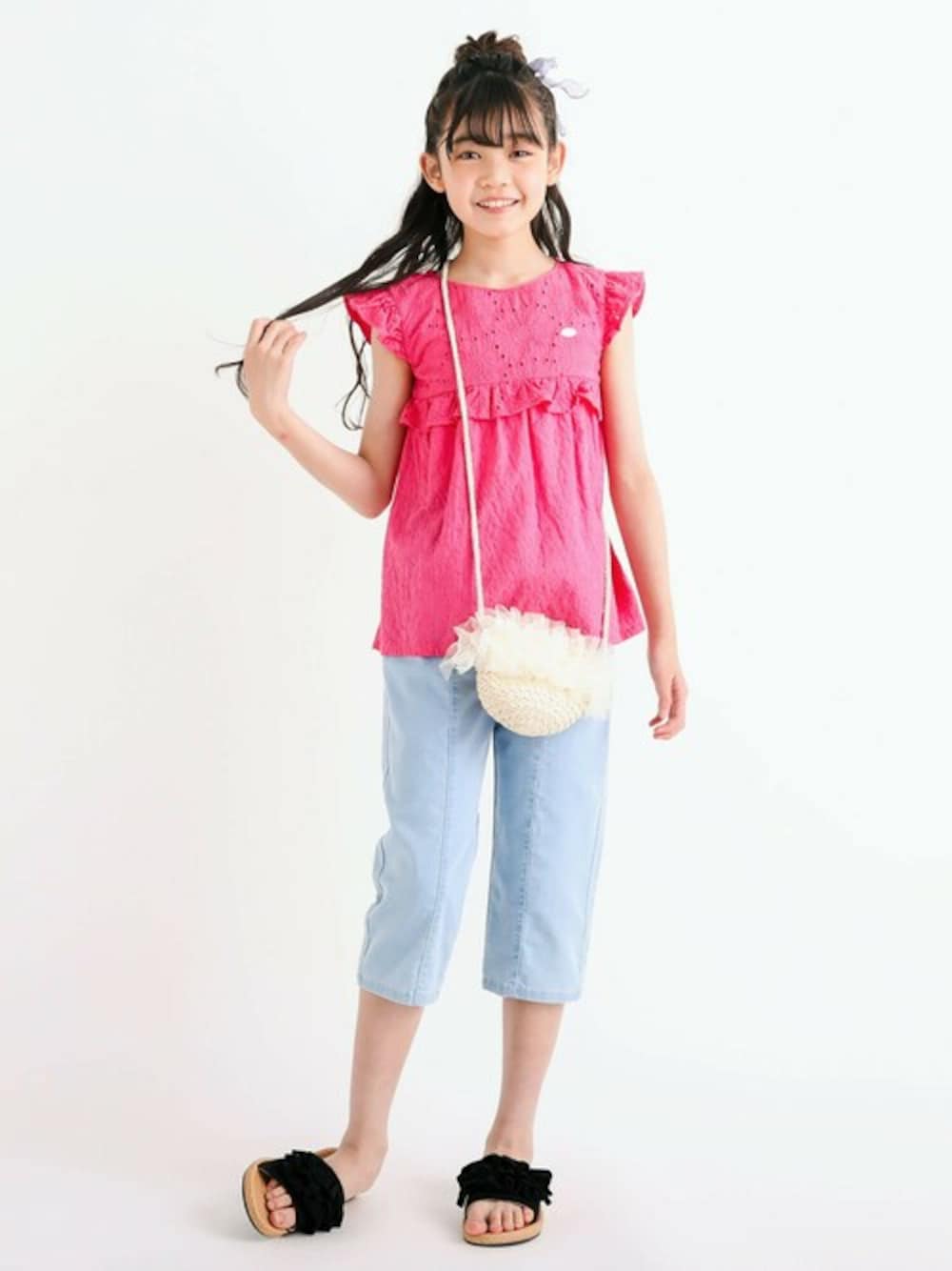 2種類のレースを切り替えたデザインがキュートなチュニック。 よーく見ると、お花の模様のレースになっているけど、上身頃と下身頃でお花のサイズが違うのがポイント◎ 袖や切り替え部分にフリルをあしらって女の子がキュンとときめくアイテムに仕上げました。 上身頃には裏地もついているから透けなくて安心。 後ろ襟ぐりにゴムが入っているのでお着替えラクラクでキッズもニコニコ。 付属品がないからお手入れしやすくて、みんながハッピー◎ すっきりしたボトムを合わせてカジュアルガーリーに着こなしたり、ショートパンツを合わせて思いっきりガーリーなスタイルに挑戦するのもオススメ。 パッと目を引くビビッドなピンクと落ち着いて合わせやすいグリーンの2色展開です。 ※バスト寸法は、多少の誤差が生じる事がございます。あらかじめご了承下さい。 2024年春夏女の子アイテム。 【SLAP SLIP(スラップ スリップ)】 ~子どもの欲しいをカタチに~ ヨーロッパのこどものように 子どもらしい今しか着れないナチュラルなかわいさを提案 どこか上品で清楚感漂うフレンチカジュアルは いつものコーディネートをさりげなく格上げ
