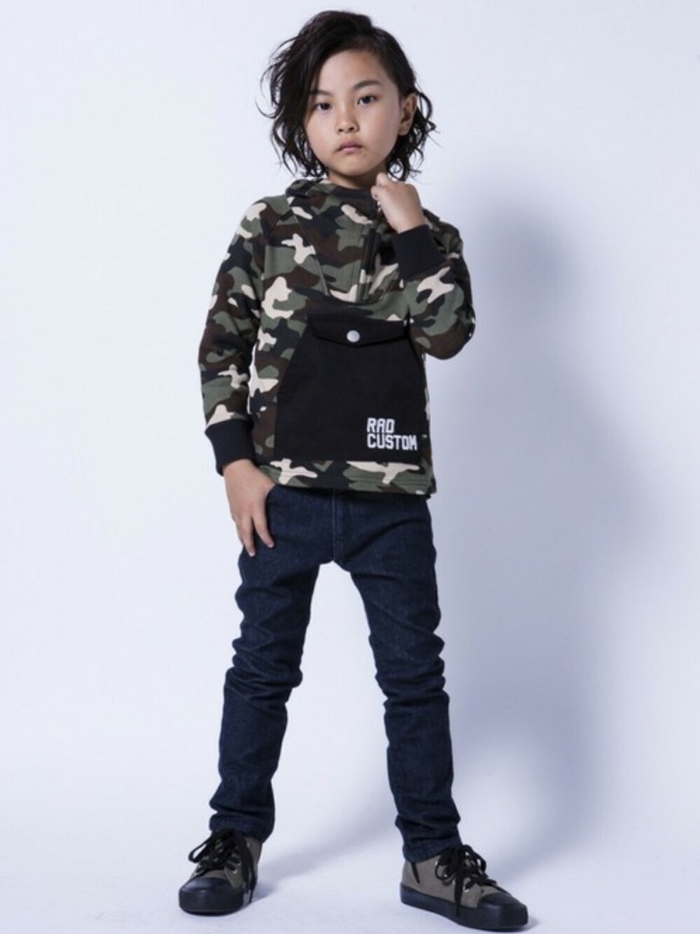 BEBE ONLINE STORE(BEBE ONLINE STORE)のパーカー「RADCUSTOM/無地・迷彩柄ウラゲフードプルオーバー」を使ったコーディネート