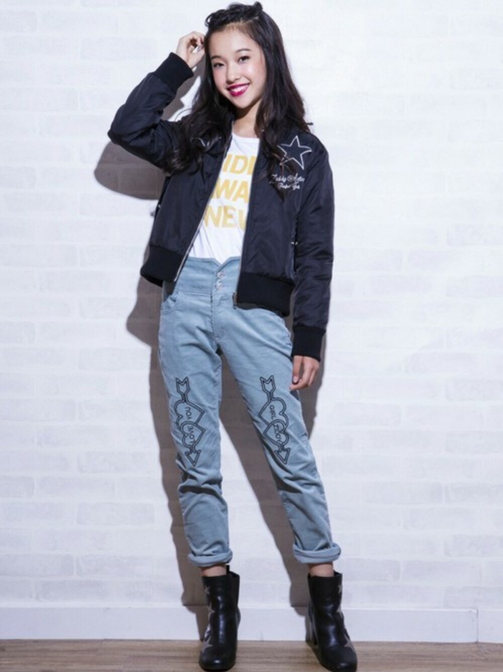 BEBE ONLINE STORE(BEBE ONLINE STORE)のMA-1「ZIDDY/MA-1ツイル星ワッペンブルゾン」を使ったコーディネート