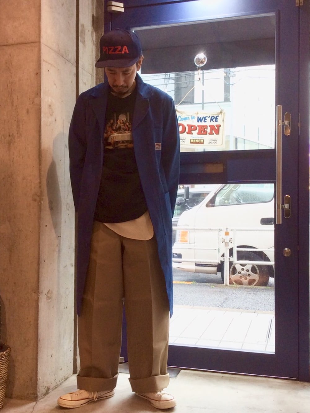 BENCH AT THE GREENEのその他アウター「USA BEN DAVIS BUTTON FRONT SHOP COAT」を使ったコーディネート