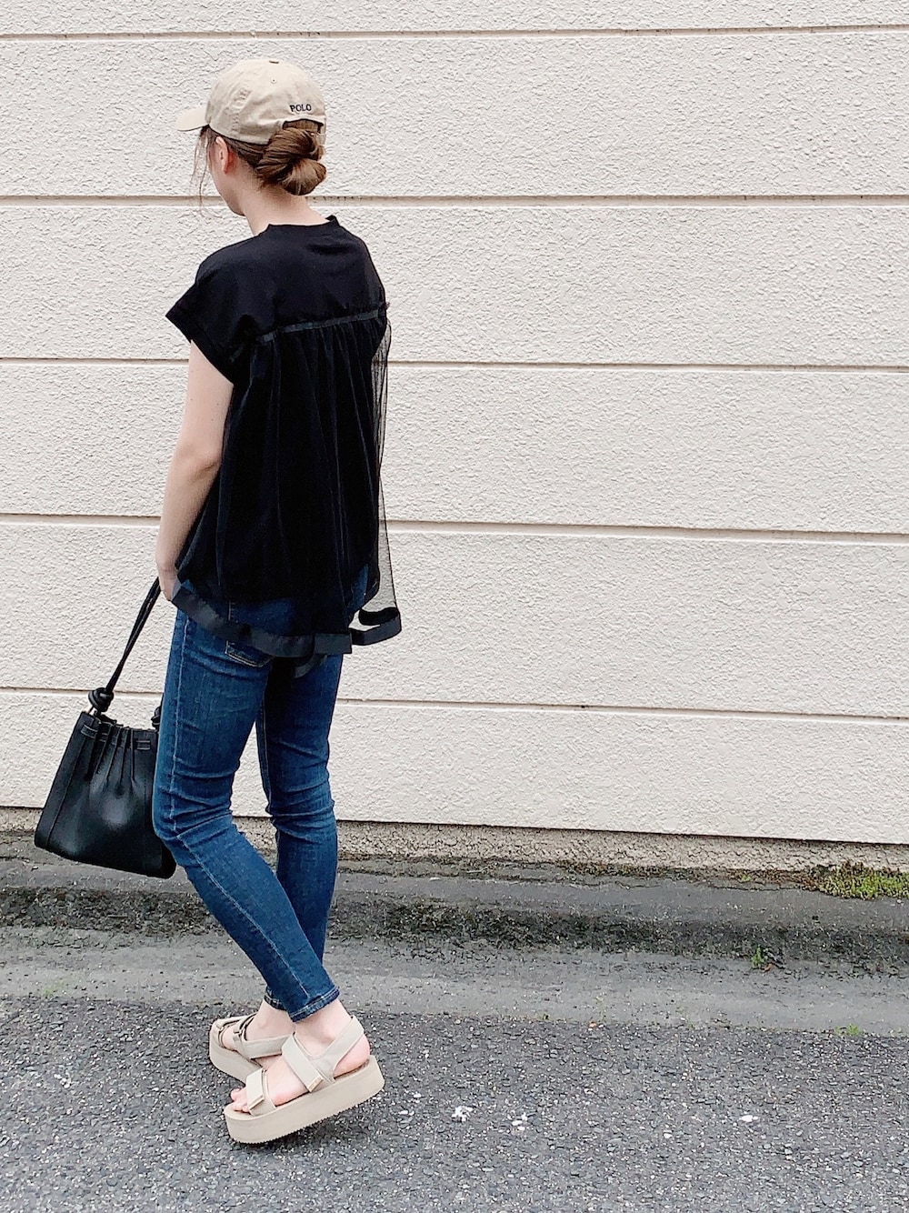 【new item】 . ✔︎ バックチュールレイヤードTシャツ off white / khaki / charcoal gray / black ¥3,600 + tax . . リラックス感溢れるカットソー素材に、ギャザーをよせたチュールデザインがポイント。 動く度に揺れるチュールとグログランテープが上品に女性らしさを演出。 . 後ろにかけて長めのデザインで、チュールが高めの位置からドッキングされているので目線が上がりスタイルアップが叶う1枚。 1枚で様になるので細めやストレートのパンツとのスタイリングがオススメです。 . . 品番:2v23101 スタッフ着用(160cm)