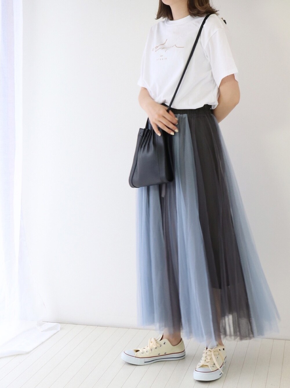 BLUEEASTのスカート「グラデーションボリュームチュールスカート」を使ったコーディネート
