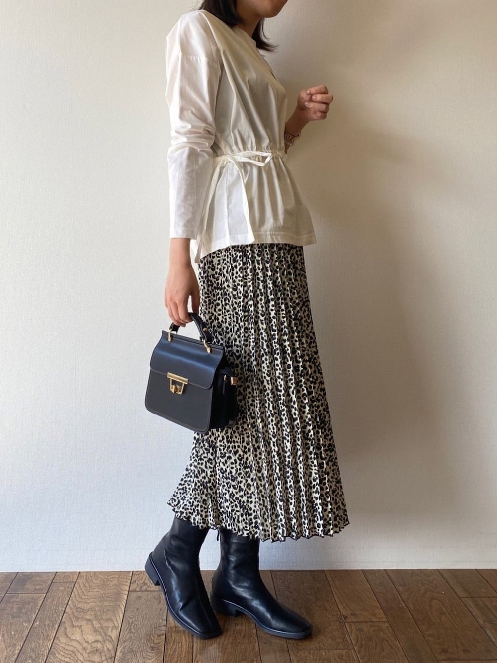 BLUEEASTのスカート「レオパードプリーツスカート」を使ったコーディネート
