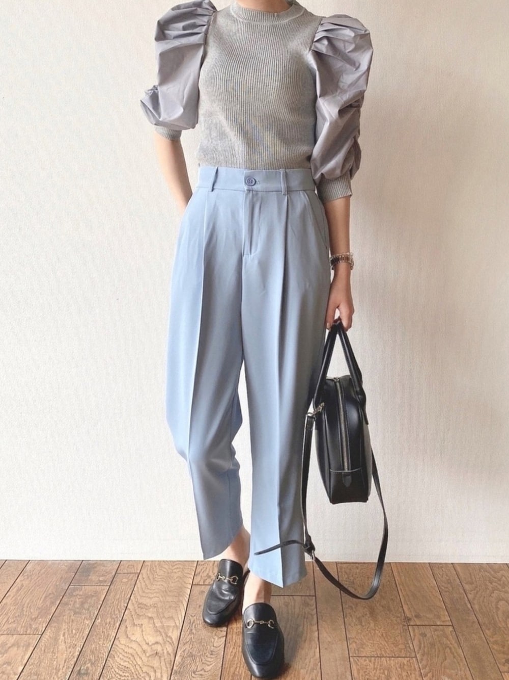 【recommend item】 ✔ パワーショルダーニットレイヤード半袖ブラウス 今年人気のパワーショルダー! ボリュー感が1枚で目を引くので、ボトムはシンプルめなものが◎ ———————————————— instagram : @blueeast.jp