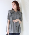 BLUEEASTのシャツ/ブラウス「ギンガムチェック&ホワイト 半袖スカラップ刺繍ビッグカラーブラウス」を使ったコーディネート