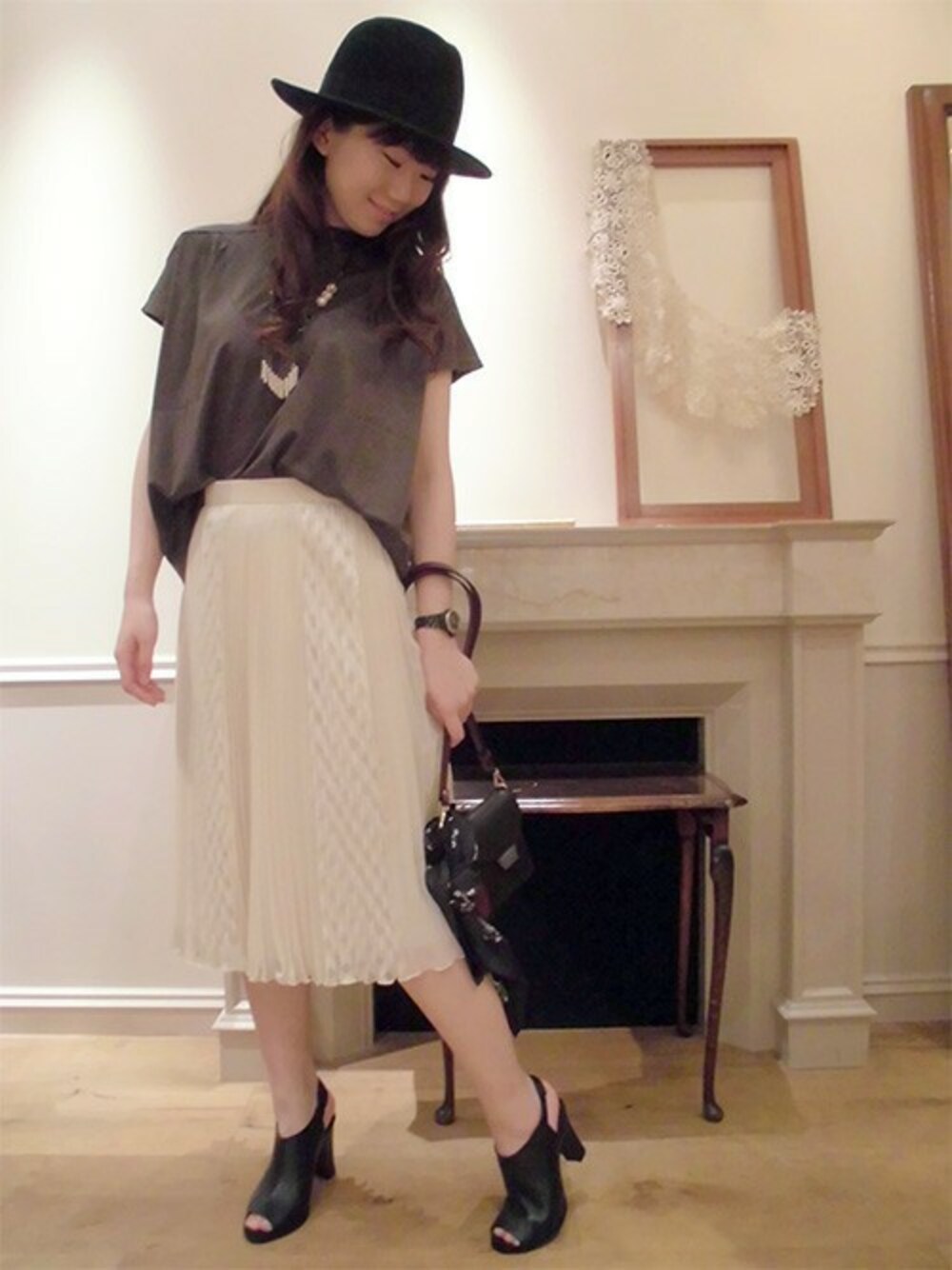 トレンドのボトルネックで、ゆったりとしたフォルムのイチオシトップスに、レディーライクなプリーツスカートを合わせたコーデ。 トップスのフロントを軽くインすることで、こなれた印象に♪ アクセやバッグなど秋カラーものを取り入れて、少し秋を意識したコーデが新鮮です!
