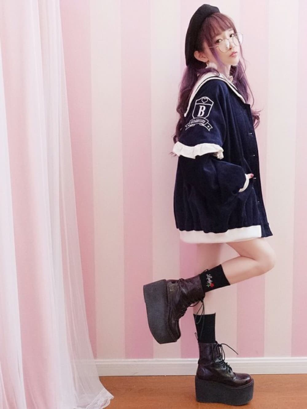 Bobon21のスタジャン「セーラー羽襟スタジャン-全3色-」を使ったコーディネート
