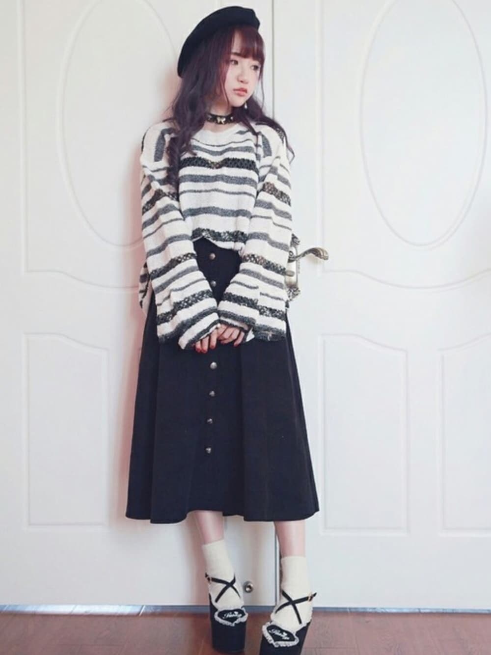🌟2017 Autumn New Collection🌟 ぷっくり袖がキュートなボーダーニットにレトロな雰囲気を だしてくれるミモレスカートで全体的にボリューム感をだした ゆるかわコーデ♪ ツイッター・インスタグラムはこちら🙏 Twitter:@Bobon21_japan Instagram:@bobon21_official