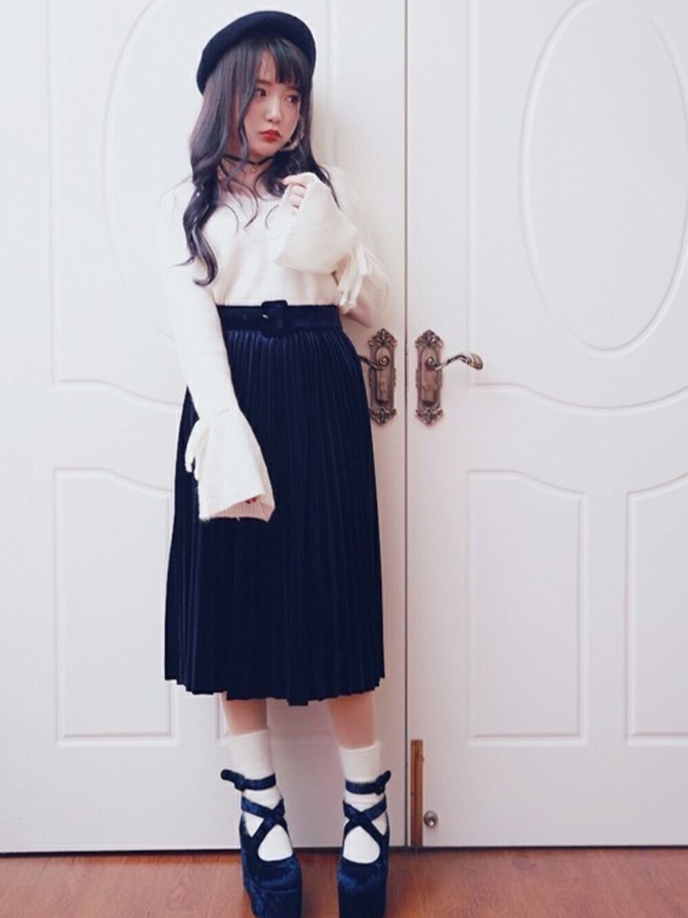 Bobon21のニット/セーター「ベルスリーブ背中レースアップニット-全2色-」を使ったコーディネート