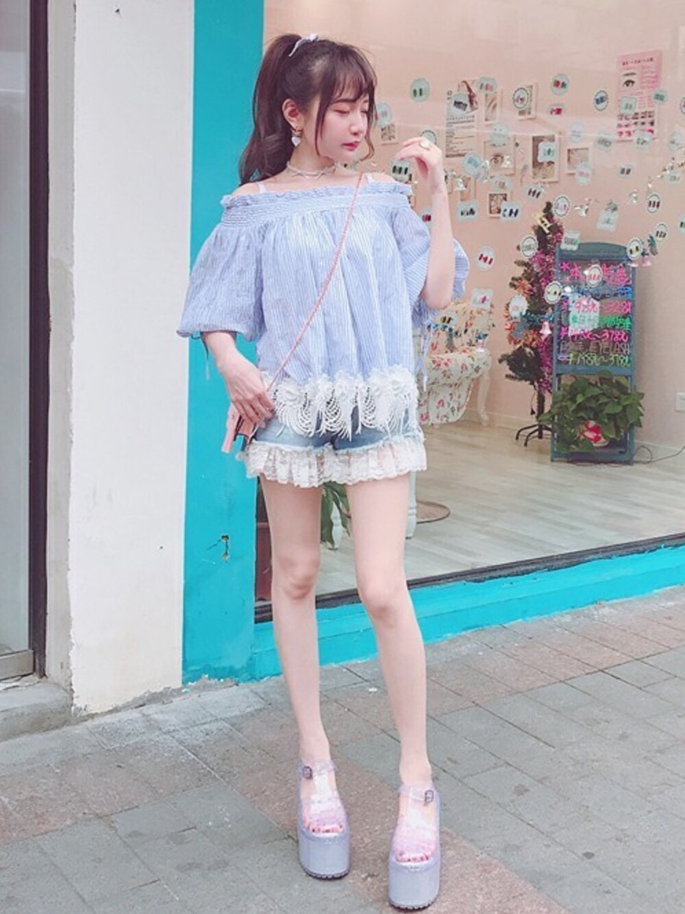Bobon21のシャツ/ブラウス「オフショルパフスリトップス-全2色-」を使ったコーディネート