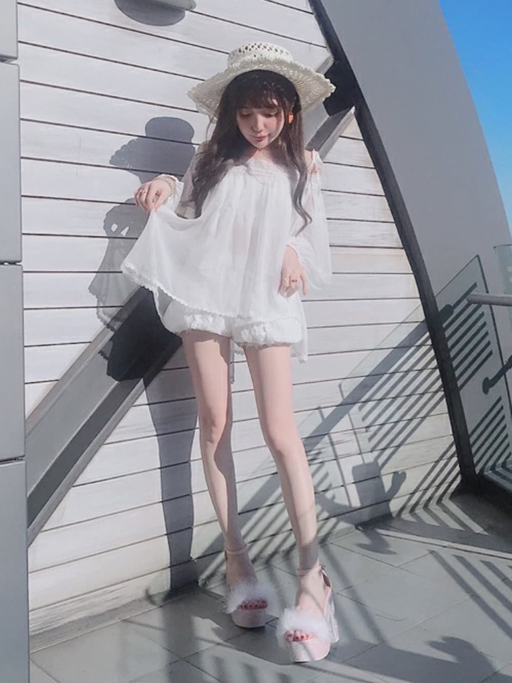 Bobon21のシャツ/ブラウス「オフショルシースルートップス-全2色-」を使ったコーディネート