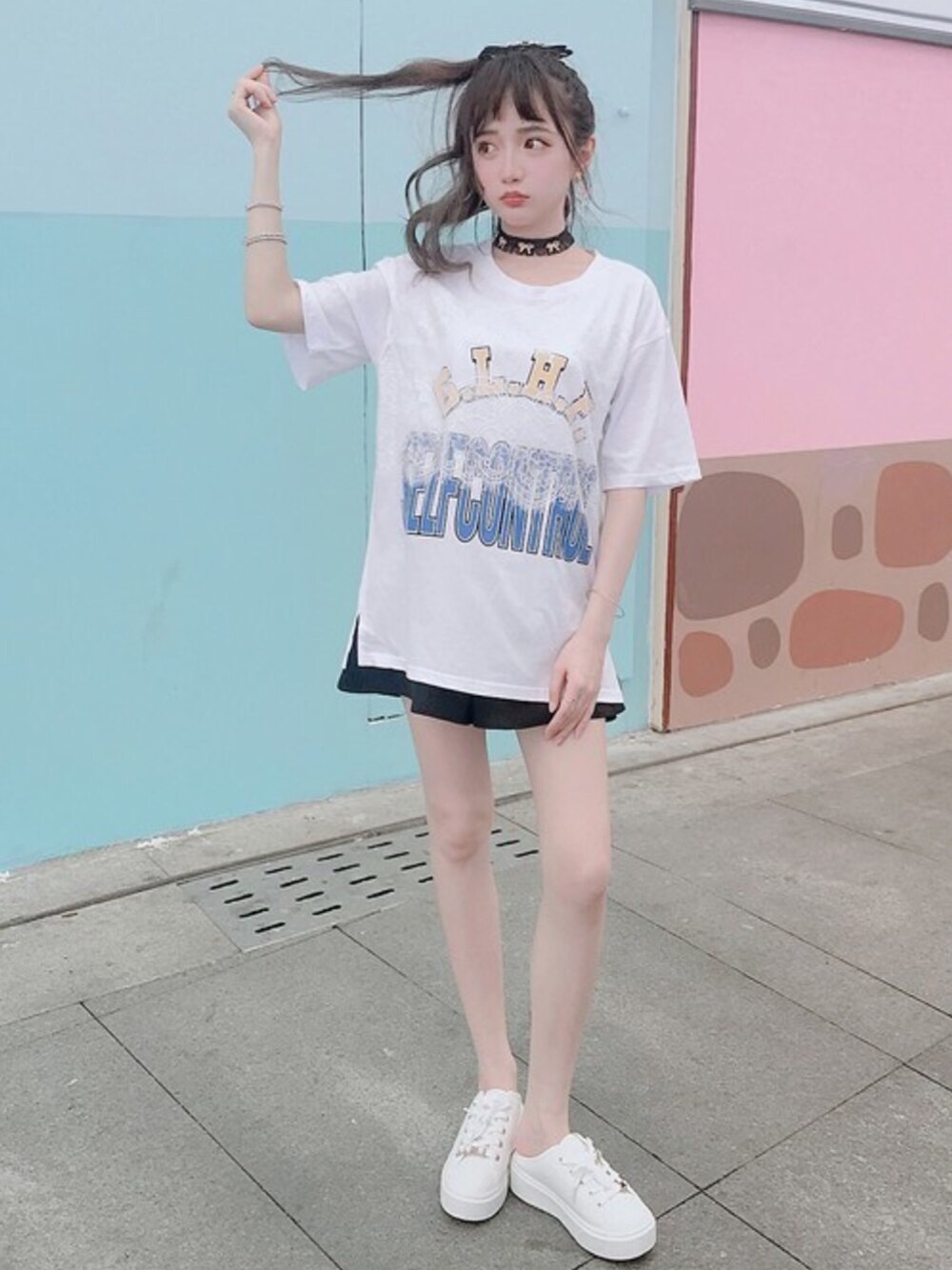 Bobon21のTシャツ/カットソー「GLHFプリントTシャツ-全2色-」を使ったコーディネート
