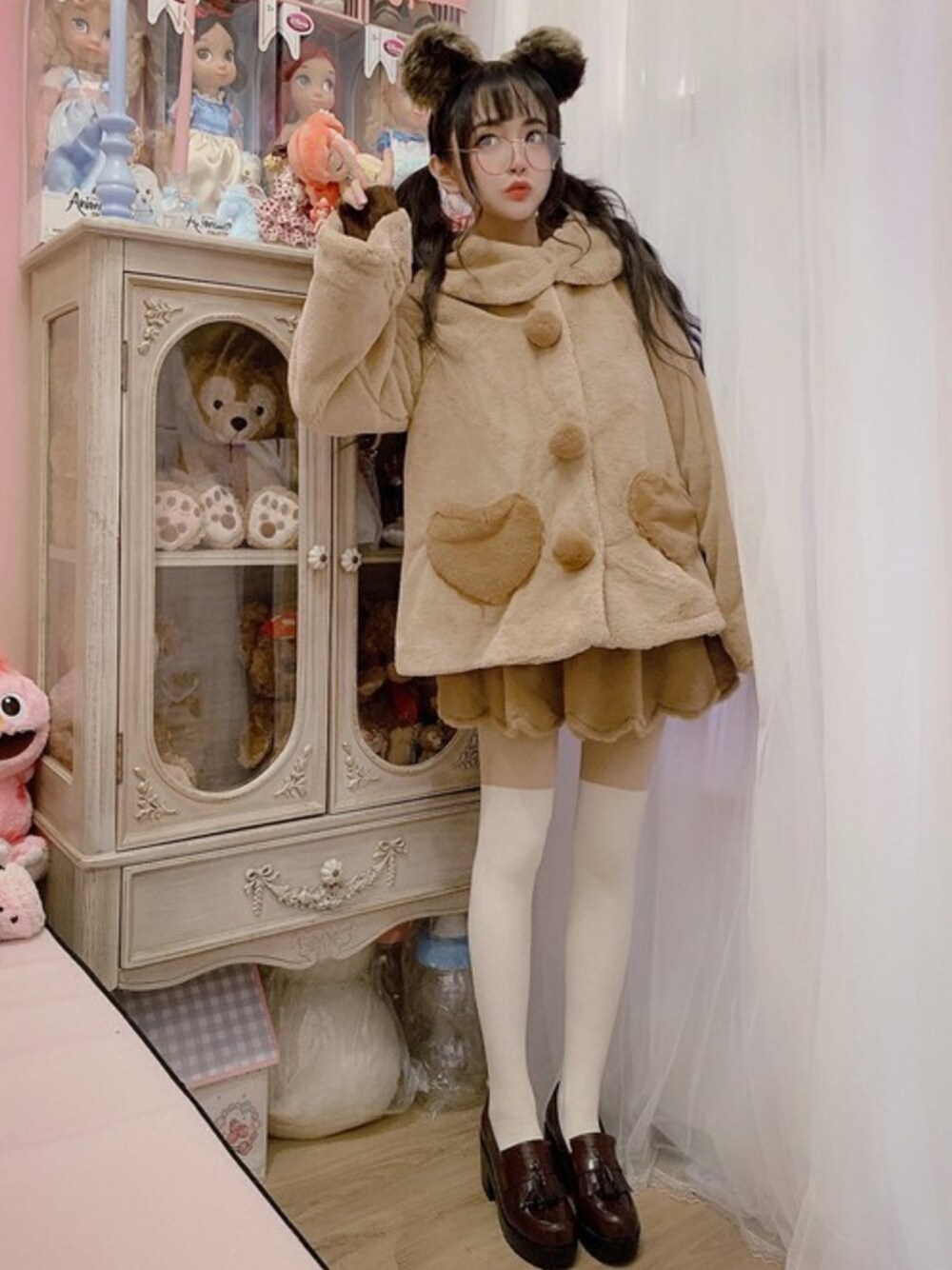Bobon21のポンチョ「ふわモコ熊さんボアコート-全1色-」を使ったコーディネート
