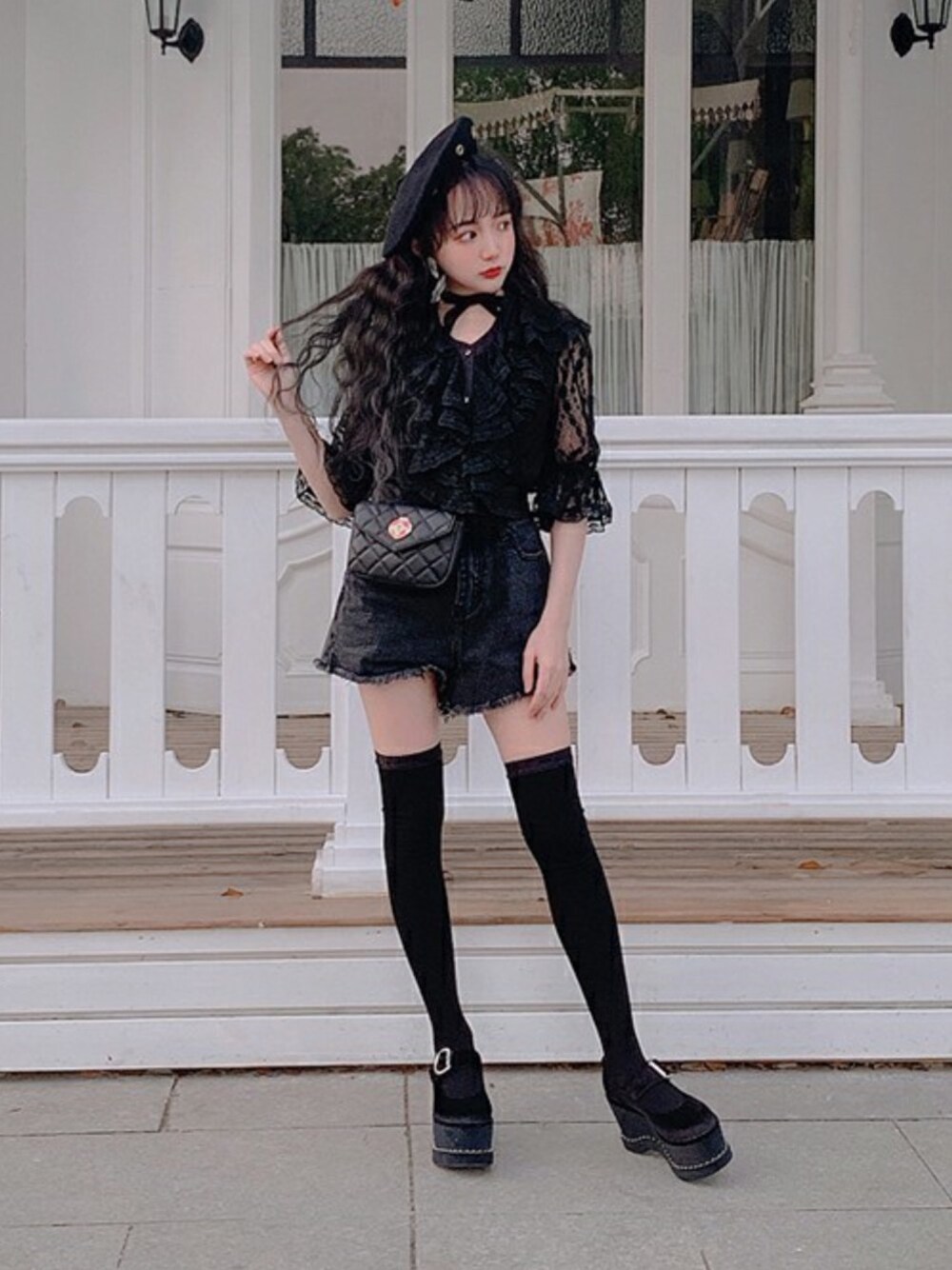 Bobon21のシャツ/ブラウス「袖透けクラシカルレーストップス-全2色-」を使ったコーディネート