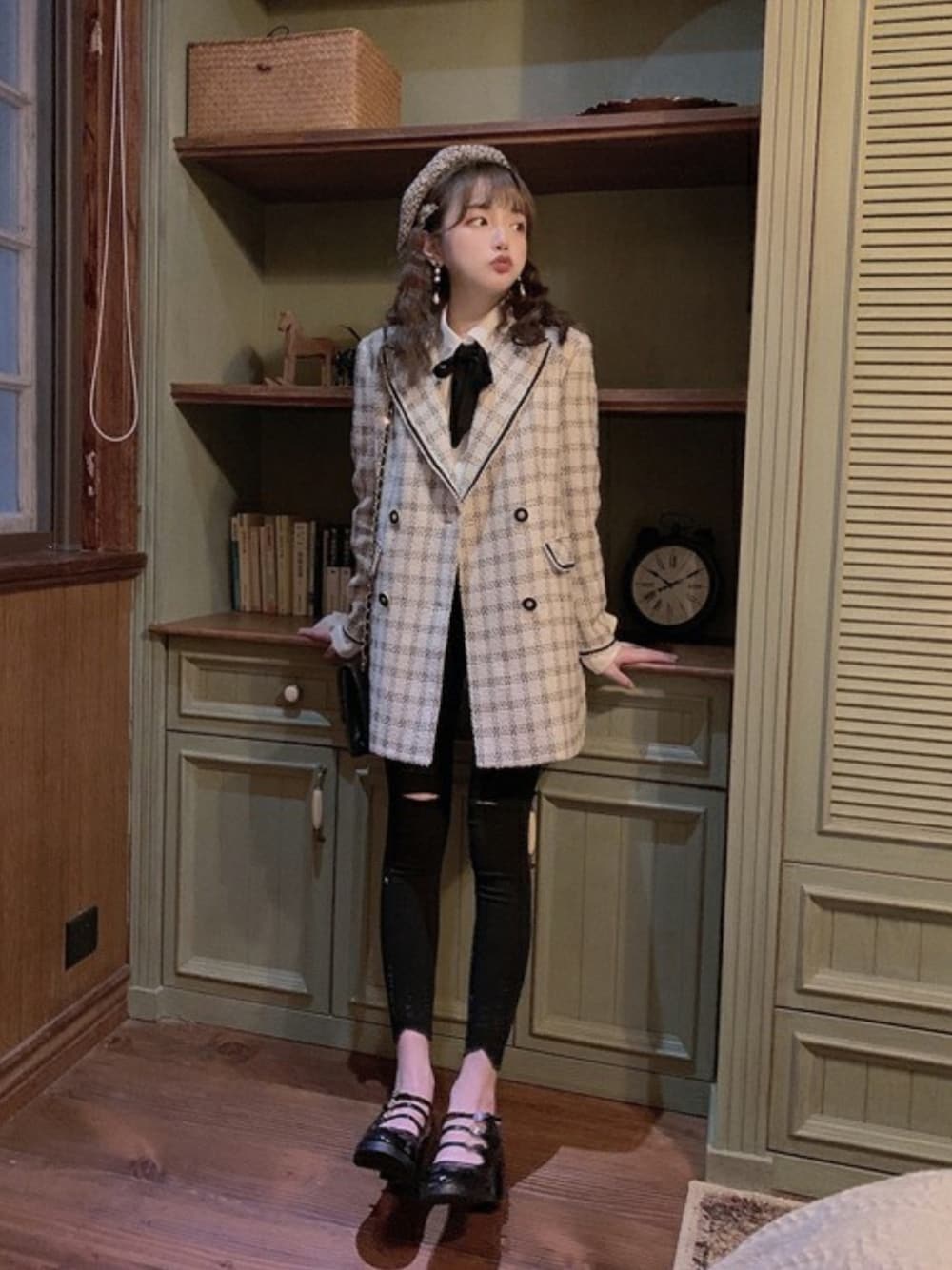 Bobon21のテーラードジャケット「ツイード風テーラードジャケット-全1色-」を使ったコーディネート