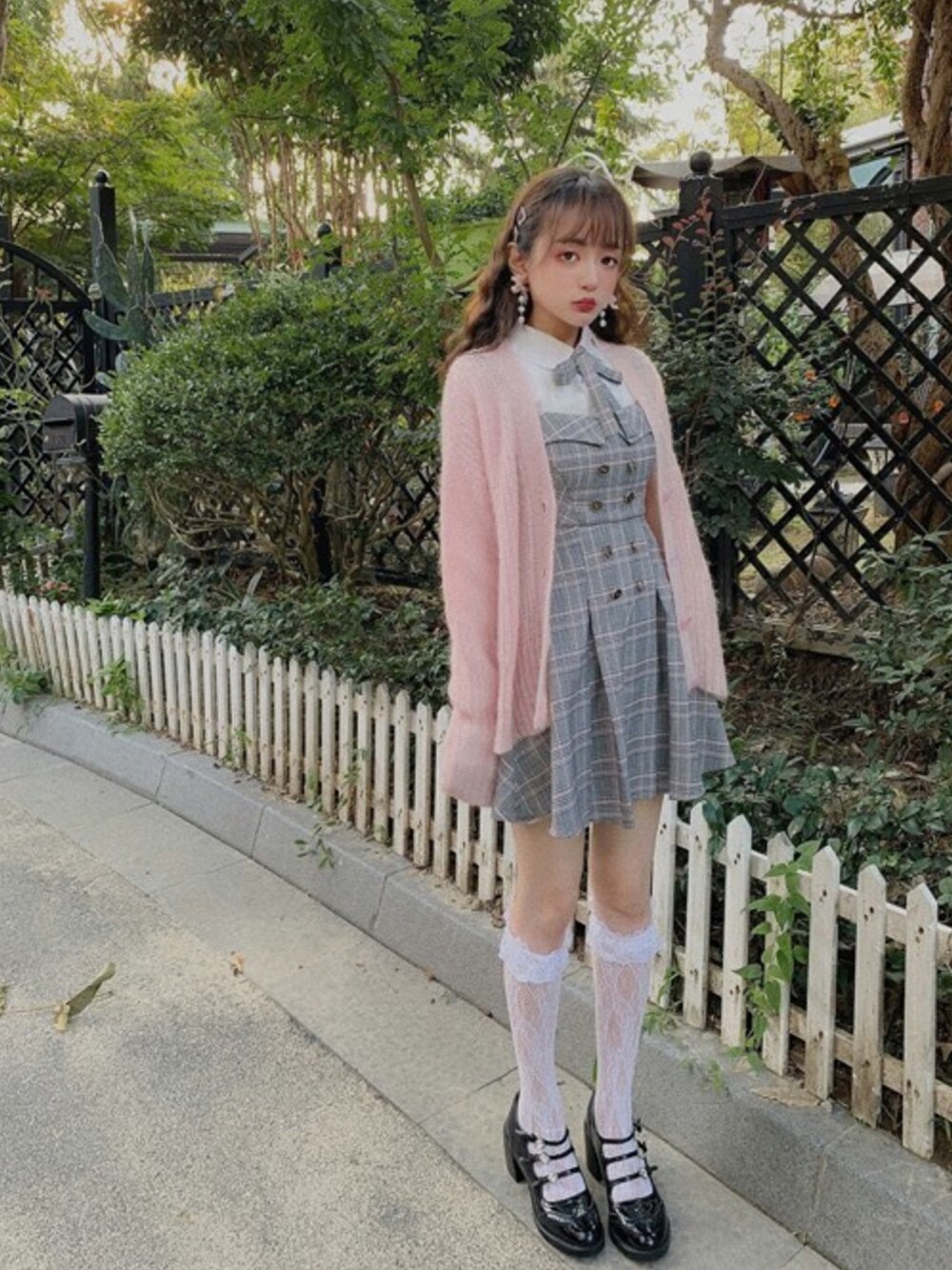 Bobon21のカーディガン/ボレロ「マカロンカラーニットカーディガン-全2色-」を使ったコーディネート