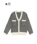 Bobon21のカーディガン/ボレロ「大人ガーリーチェック柄ニットカーディガン-全2色-」を使ったコーディネート