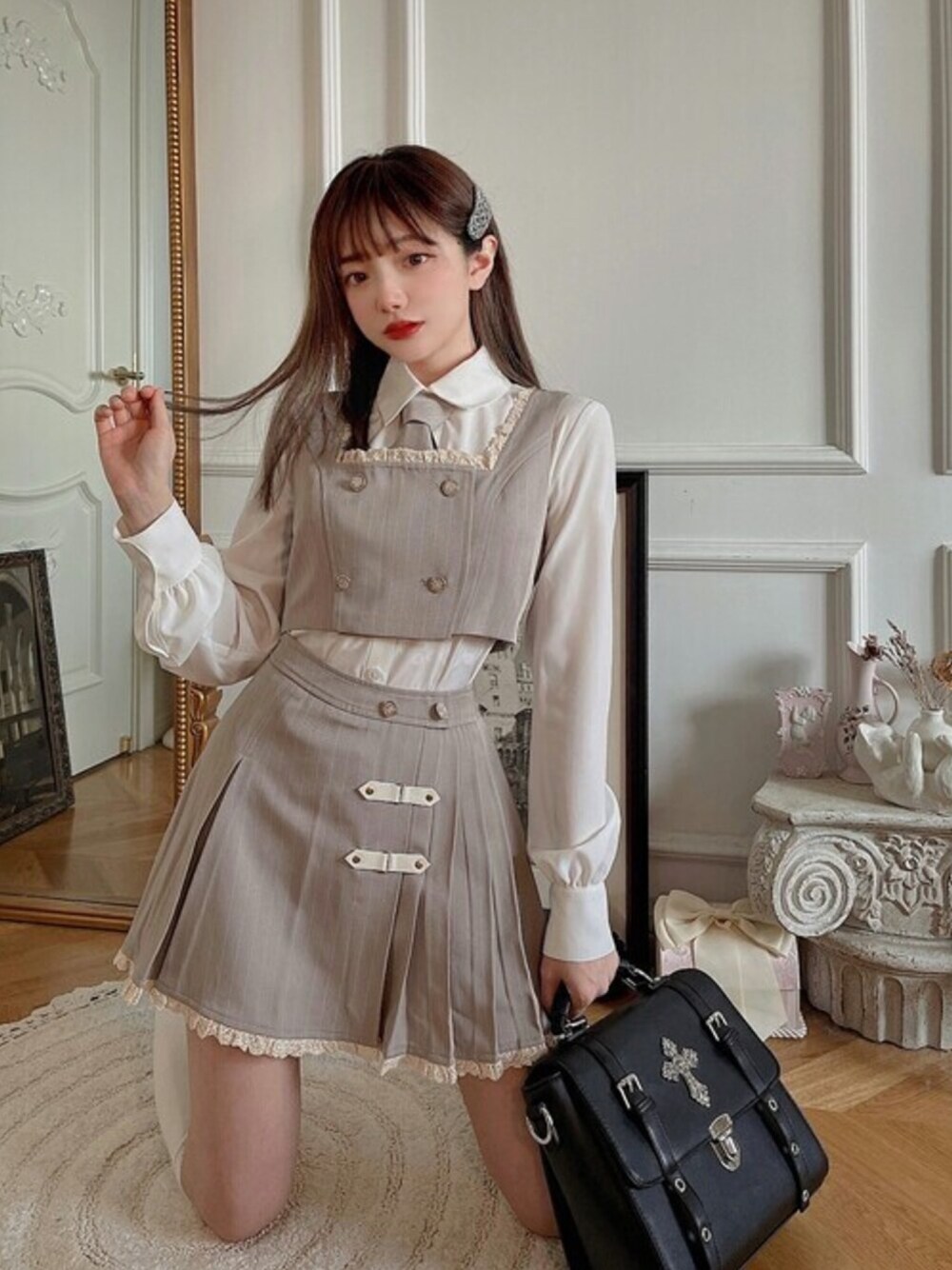 ♡2021 Spring New Collection♡ スクエア襟にヴィンテージレースをあしらい 襟元のデザインがさらに華やかになる 中にベーシックなブラウスと合わせても セットで付く2色ネクタイを入れると アレンジしたJK制服LOOKに大変身 同シリーズスカートとのセットが超絶おすすめ ツイッター・インスタグラムはこちら🙏 Twitter:@Bobon21_japan Instagram:@bobon21_official