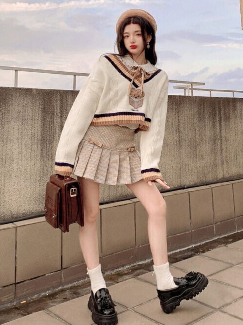 ♡2021 A/W New Collection♡ スクールセーター風Vネックケーブル編み クラシカルでお洒落な3色ライン入り ショートな丈感でボトムスと良いバランスに センターに読書に夢中なもこもこ小熊ちゃん 萌えキャラセーターは冬の癒しになるよ もちろん制服コーデにもおすすめな1枚 ツイッター・インスタグラムはこちら🙏 Twitter:@Bobon21_japan Instagram:@bobon21_official