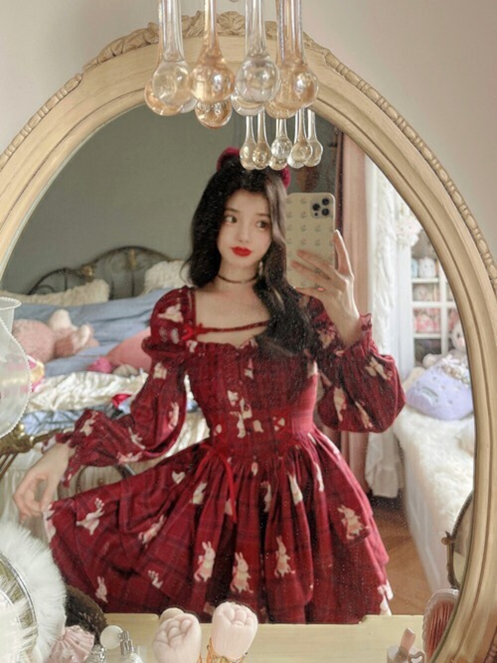 ♡2021 A/W New Collection♡ 存在感溢れるヒロインドレス ソフトタッチな起毛素材で秋冬モードON チェック柄に愛くるしいうさぎの姿 大きく開いたスクエア襟に クロスラインを入れスペシャルデザイン チラ見え防止を兼ねて可愛さもハンパない ウエストをキュッと見せるレースアップ仕様 袖部分も絶妙なボリューム出しと引き締め効果 スカートはプリンセス風な立体的3段フレア どのアングルからも完璧で主役級オーラ全開 ツイッター・インスタグラムはこちら🙏 Twitter:@Bobon21_japan Instagram:@bobon21_official
