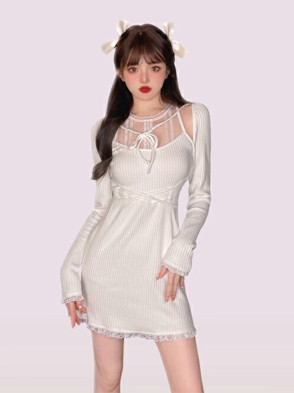Bobon21のワンピース「レースドッキングリブニットワンピース-全2色-」を使ったコーディネート
