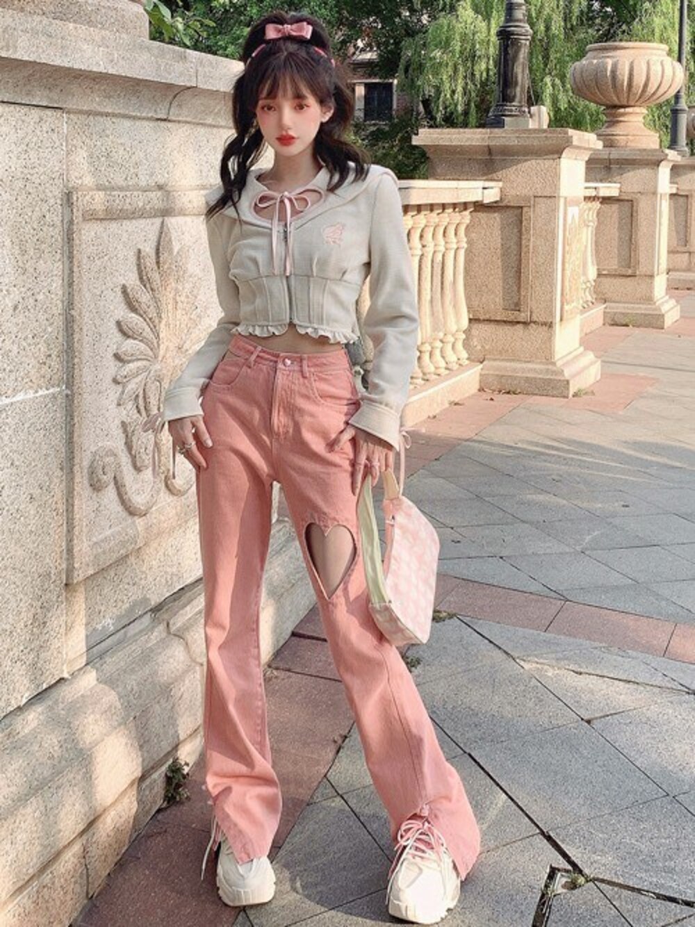Bobon21のブルゾン「甘ガーリーハートくり抜きブルゾン」を使ったコーディネート